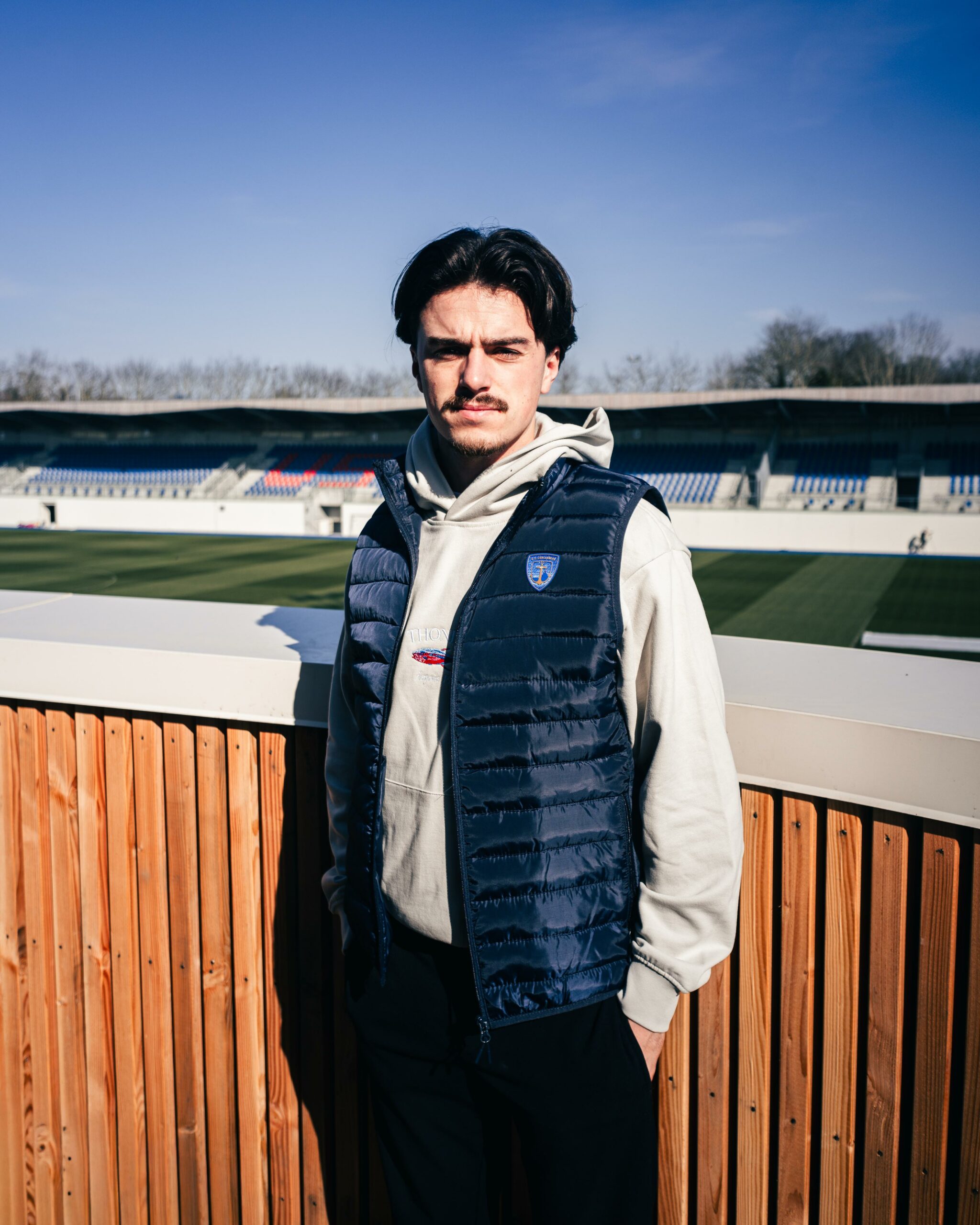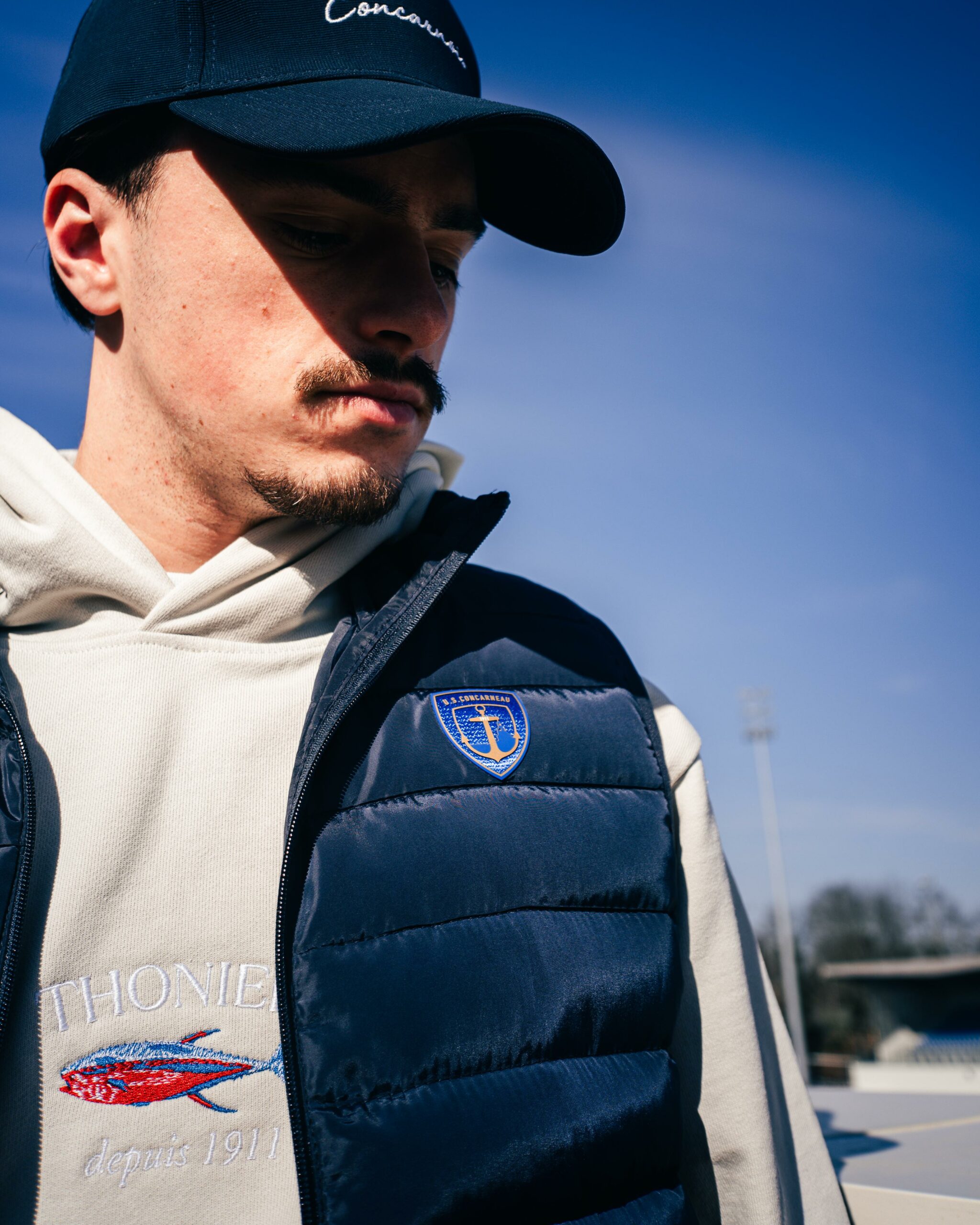 Doudoune sans manche bleu marine, légère et confortable, idéale en toute saison. Son logo U.S. Concarneau bleu et or apporte une touche sportive et élégante à votre tenue.