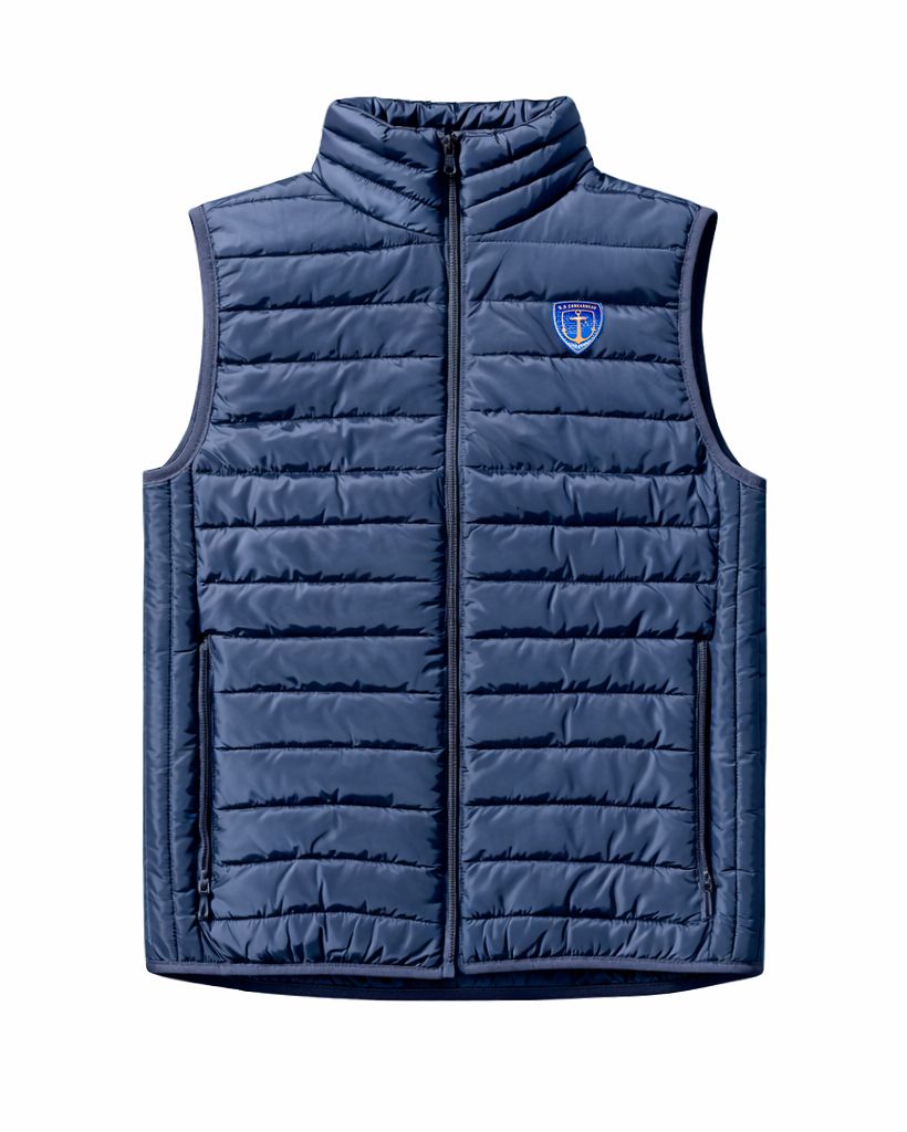 Doudoune sans manche bleu marine, idéale pour un look sportif et élégant. Conçue pour allier confort et légèreté, elle offre une isolation optimale tout en laissant une grande liberté de mouvement. Son logo U.S. Concarneau en bleu et or, brodé sur la poitrine, apporte une touche distinctive et authentique. Parfaite au quotidien comme les jours de match, elle s’adapte facilement à toutes vos tenues.