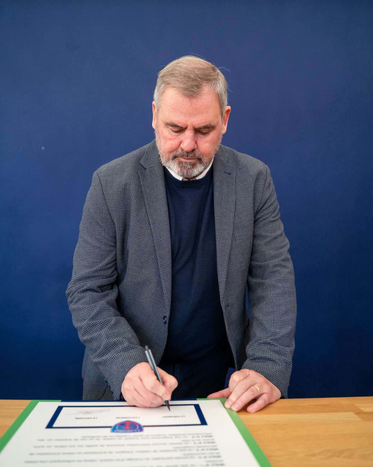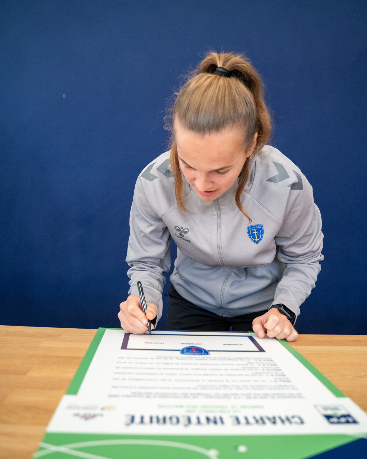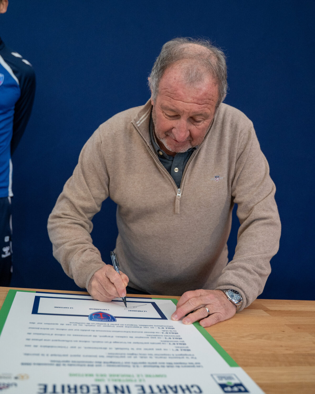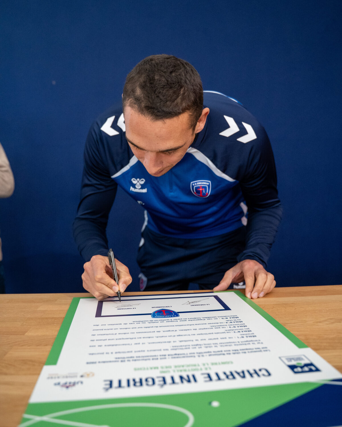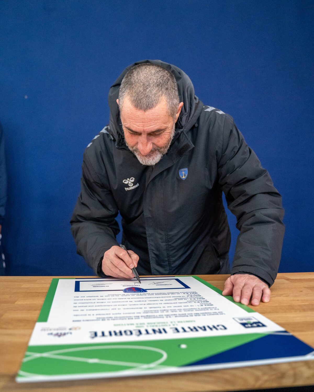 Au terme de ces interventions, Jacques Piriou (Président de l’US Concarneau), Guillaume Jannez (Capitaine) et Stéphane Rossi (Entraîneur principal) ont paraphé la Charte de l’Intégrité, marquant ainsi l’engagement du club en faveur d’un football exemplaire, responsable et respectueux des règles éthiques.